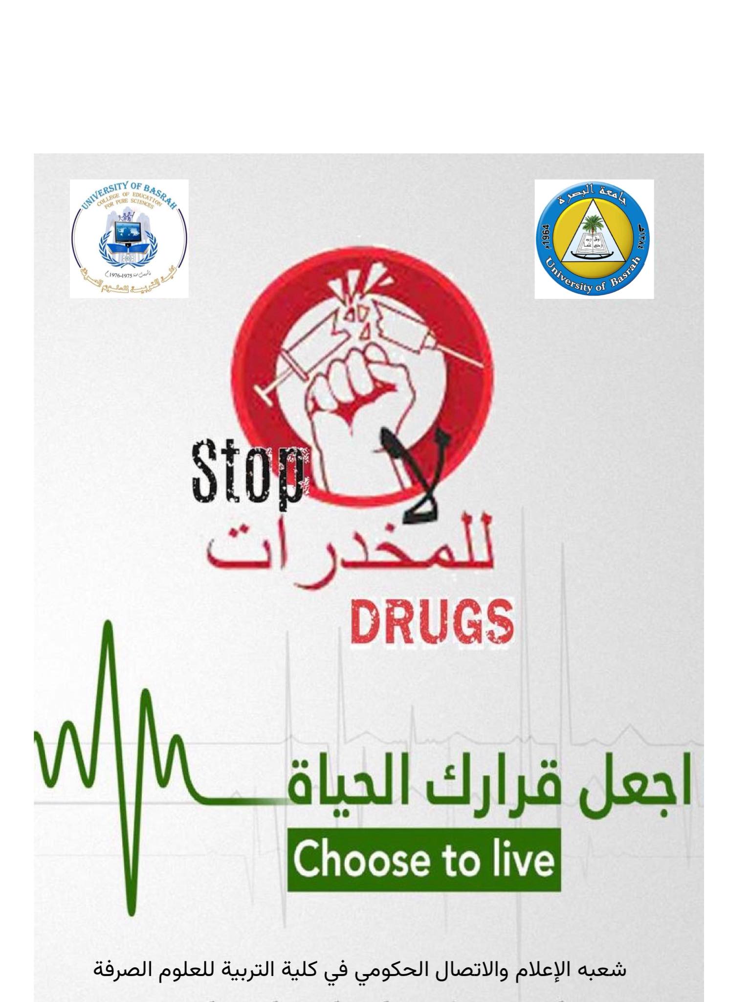 أطلقت جامعة البصرة في كلية التربية للعلوم الصرفة حملة توعوية إعلامية شاملة لمكافحة آفة المخدرات والمؤثرات العقلية، بمشاركة فاعلة من الكوادر التدريسية والطلبة ومنتسبي الكلية.
