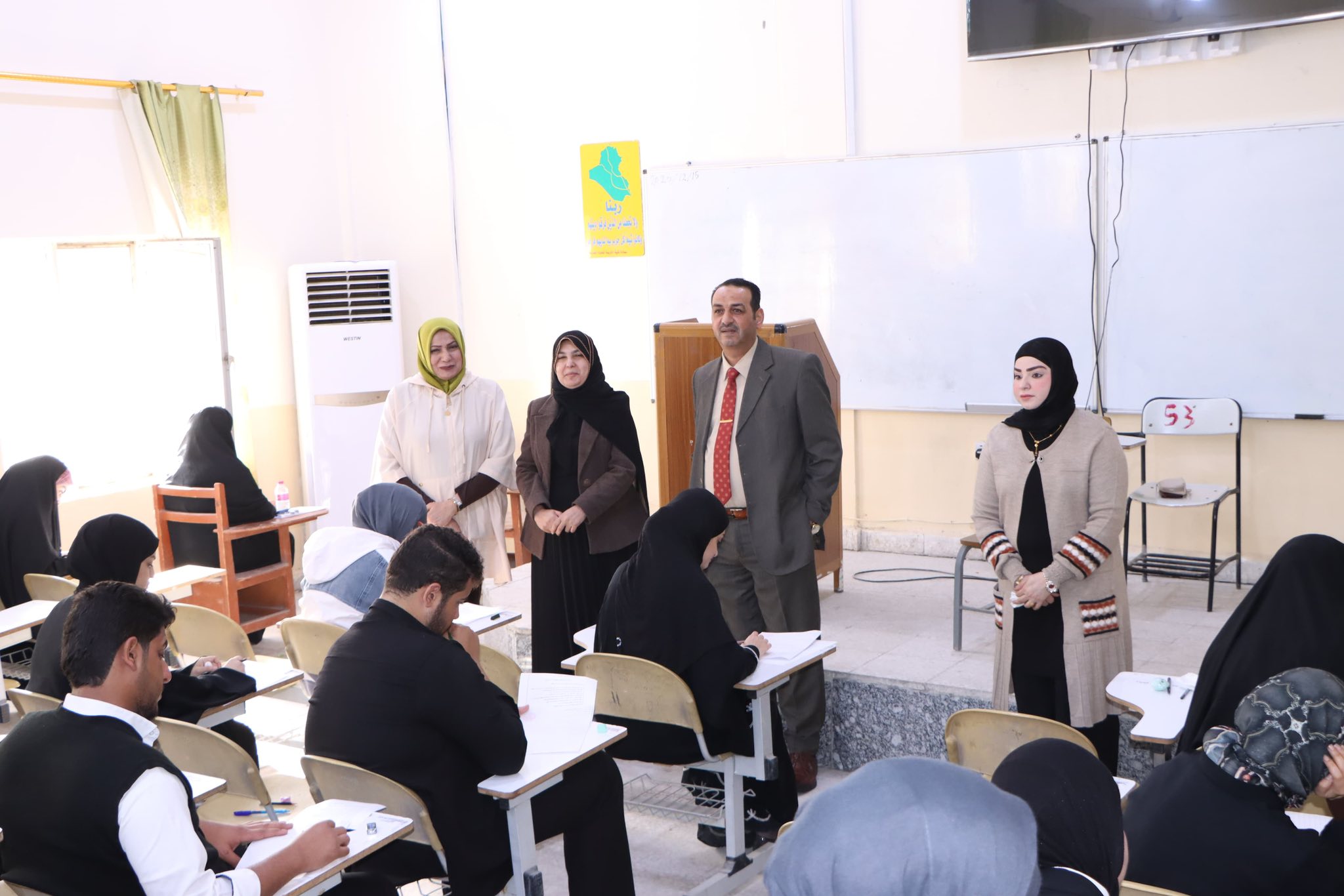 وقد أجرى السيد معاون العميد للشؤون العلمية الأستاذ المساعد الدكتور حيدر قاسم فاضل جولة تفقدية للقاعات الامتحانية للاطلاع على انسيابية سير الامتحانات والوقوف على جاهزية القاعات.