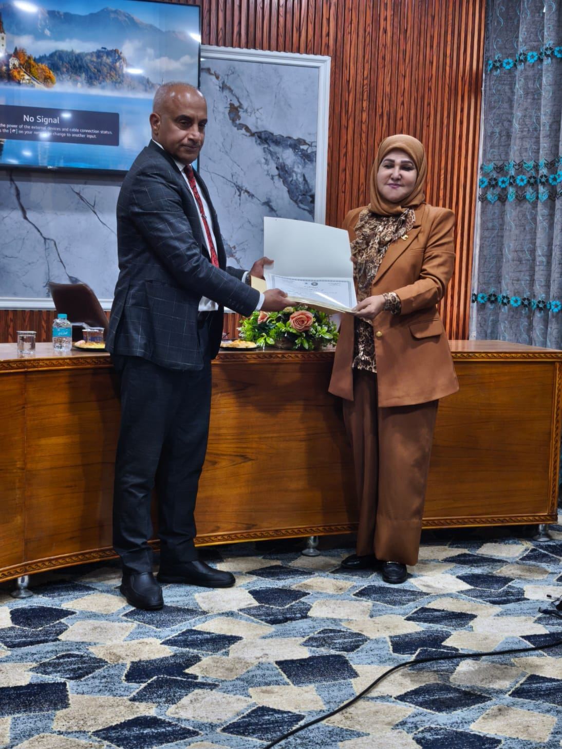 اقامت وحدة التأهيل والمتابعة في كلية التربية للعلوم الصرفة وبالتعاون مع قسم علوم الحياة الندوة التوعوية (مكافحة التطرف العنيف مسؤولية كل فرد) في يوم الاربعاء الموافق 11 / 2 / 2026 ضمن احتفالية الكلية في اليوم الدولي لمكافحة التطرف العنيف وقد حاضر فيها كل من المقدم منتظر كاظم نعمة من قسم الشرطة المجتمعية وأ.م.د. خولة حسن حمود من كلية التربية للعلوم الانسانية وقد هدفت هذه الندوة إلى توضيح ان أعمال الإرهاب والتطرف العنيف لا يمكن منعها أو مكافحتها من خلال التدابير القمعية وحدها، بل الحاجة إلى اتباع نهج شامل يشارك فيه المجتمع بأسره ويتوافق مع حقوق الإنسان ويراعي الاعتبارات الانسانية. ان مكافحة التطرف العنيف تكون مسؤولية مشتركة تقع على عاتق كل فرد والمجتمع بأكمله، وتتجاوز مسؤولية الحكومات والأجهزة الأمنية فقط، لتشمل الأسرة والمؤسسات التعليمية والإعلام والمجتمع المدني، من خلال تعزيز الوعي، نشر التسامح، وتغيير الخطاب، فمواجهة التطرف تتطلب جهودًا وقائية وتثقيفية واجتماعية متكاملة لدعم الأفراد ومنع انجرافهم نحو العنف، خاصة عبر دور الأسرة والمؤسسات التعليمية في بناء الشخصية السوية.