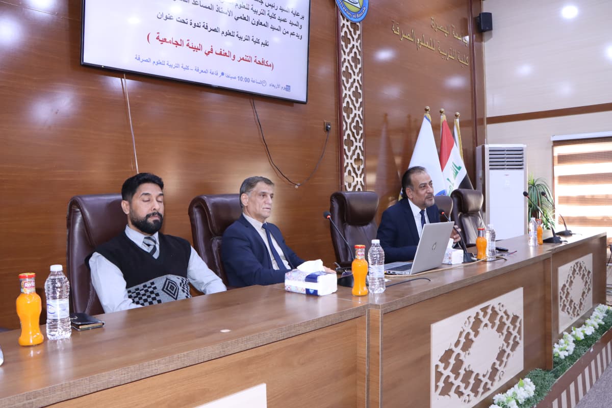 تحت شعار "معاً نحو بيئة جامعية آمنة قائمة على الاحترام"، ونزولاً عند مقتضيات تعزيز القيم الإنسانية داخل الحرم الجامعي، نظمت كليةالتربية للعلوم الصرفة /وحدة حقوق الإنسان وبالتعاون مع المفوضية العليا لحقوق الإنسان ندوة توعوية عن مكافحة التنمر والعنف في البيئة الجامعية