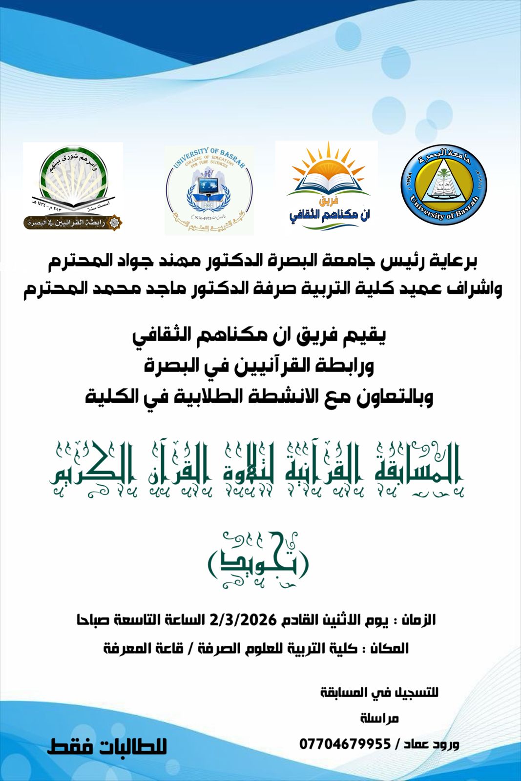 كلية التربية للعلوم الصرفة تقيم المسابقة القرآنية لتلاوة القران الكريم