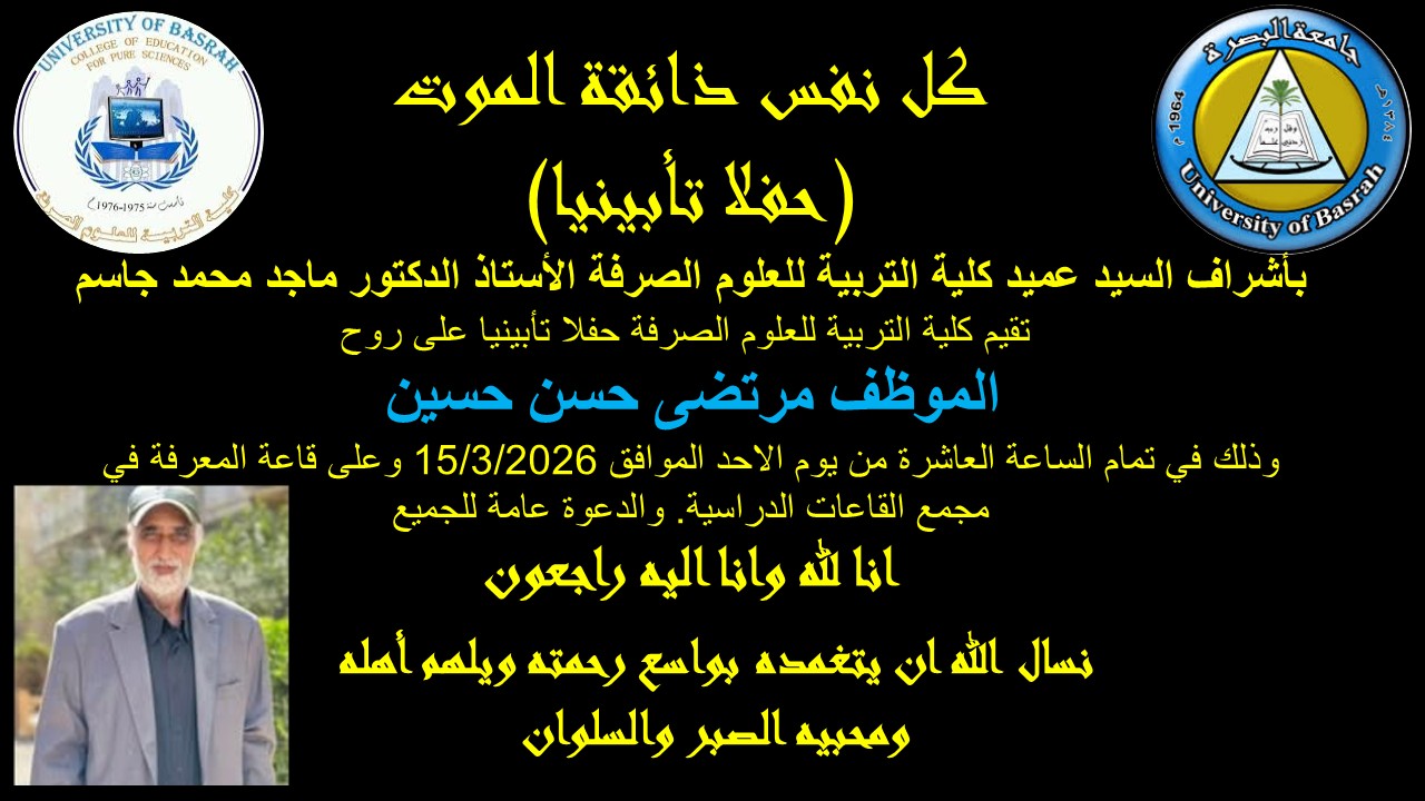 قسم الكيمياء في كلية التربية للعلوم الصرفة يقيم دورة تحت عنوان (دورة السلامة الاشعاعية ال CBRN موجهة لطلبة الدراسات العليا باختصاص الفيزياء )