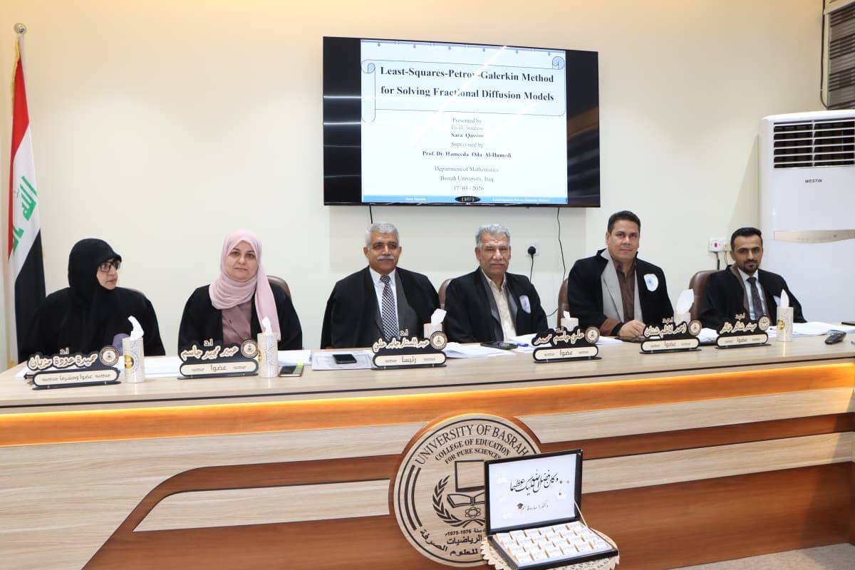 بحثت كلية التربية للعلوم الصرفة في قسم الرياضيات اطروحة الدكتوراه حول (طريقة بيتروف-كاليركن-المربعات-الصغرى لحل نماذج الأنتشار الكسرية)