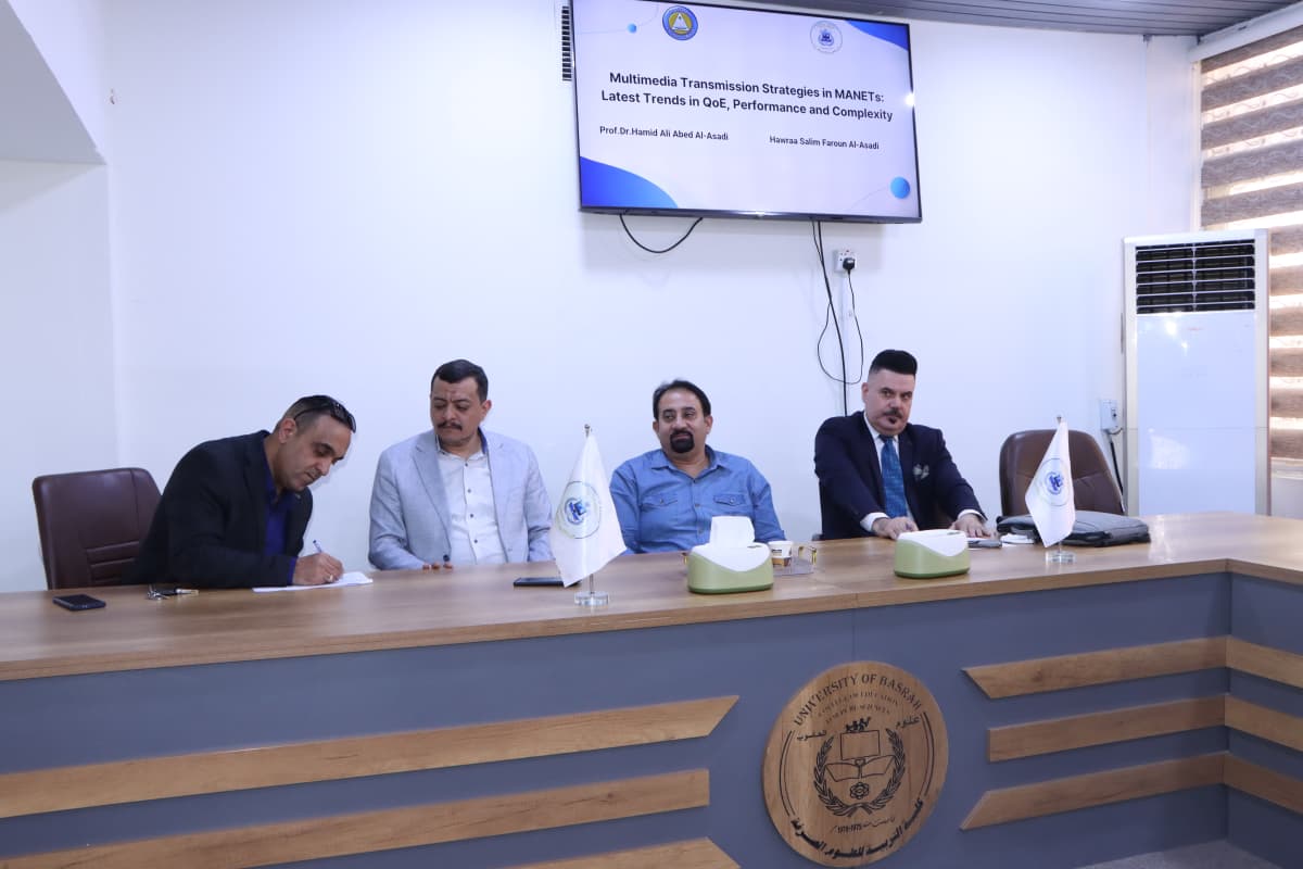في يوم الأحد الموافق 5 نيسان 2026، وذلك أمام لجنة علمية متخصصة، وبحضور عدد من أساتذة القسم والكلية، وبحضور طلبة الدراسات العليا (الماجستير والدكتوراه).